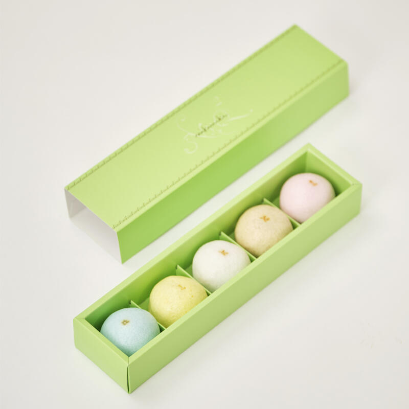 お召し上がりやすい一口サイズの上用饅頭です。シナモン、レモン、バニラ、黒糖、クルミの5種類をご用意いたしました。