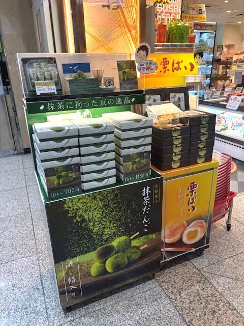 定番商品の抹茶だんごに加え、秋の栗パイも同時に展開しております。